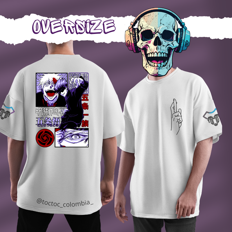 Esta camiseta oversize TOCTOC está inspirada en el estilo visual de Jujutsu Kaisen, con Gojo Satoru como protagonista absoluto.
